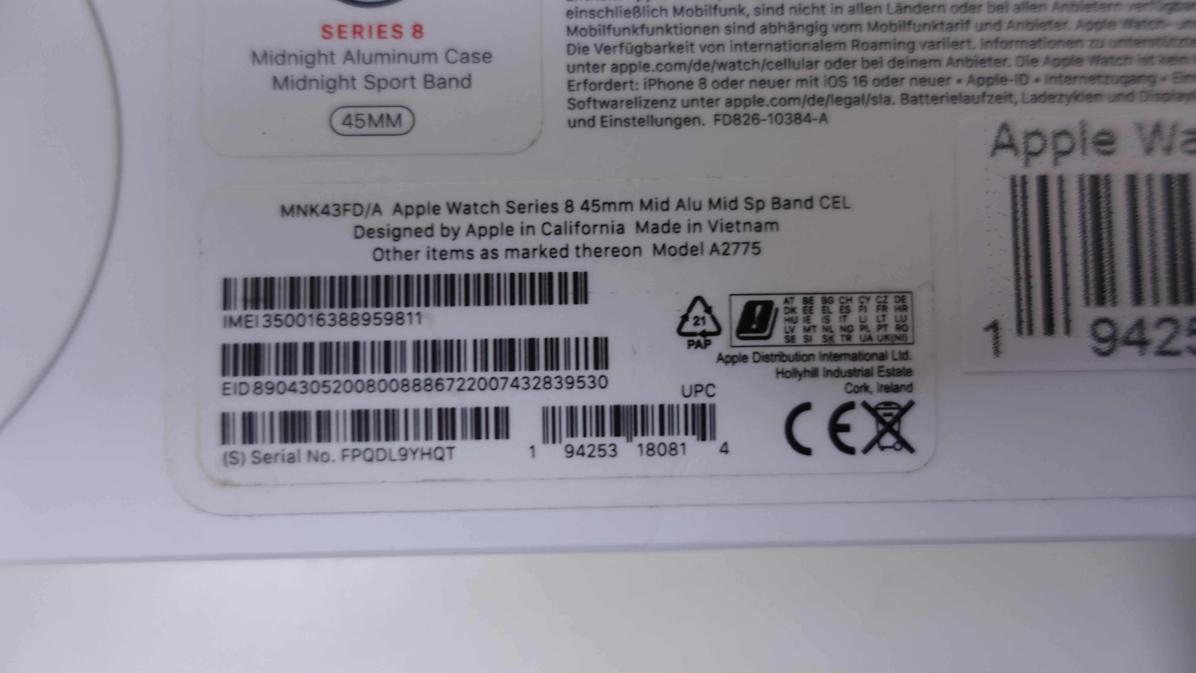 Model | Watch Series 8 45 mm GPS + Cellular |